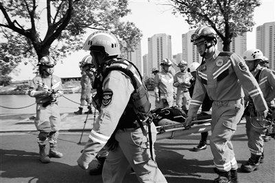 烈日炎炎,挡不住医护工作者训练激情。绍兴第二医院21名医护人员穿着厚厚的防护服,开展包含器材装备点验、徒步行进、营地搭建、废墟搜索等多个科目在内的地震救援实战演练,以提高医护人员面对突发公共卫生事件的应急反应能力和救援能力。