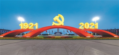 | 傍晚时分的天安门广场“党徽年号台”。 |