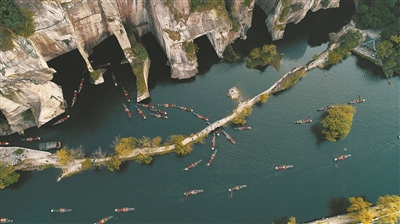 东湖景区“稽山秀水古越景 百船百幅展百年”活动,把百条乌篷船作为载体,以时间为序,以中国共产党诞生为起点,一幅幅波澜壮阔的光影画卷在流动的东湖上跃然眼前。