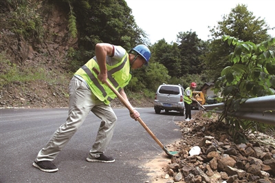 公路站站长余坚介绍,“6·30”特大洪灾,转大线沿线多处路基被洪水冲毁,造成路面下沉、山体塌方等险情。趁着天气晴热,连日来,公路站每天组织10多名养护人员,克服高温炎热天气,奋战在公路养护第一线,逐一清除路面泥石,及时处置倾倒树木,确保山区公路安全畅通。徐曙光 詹旭根