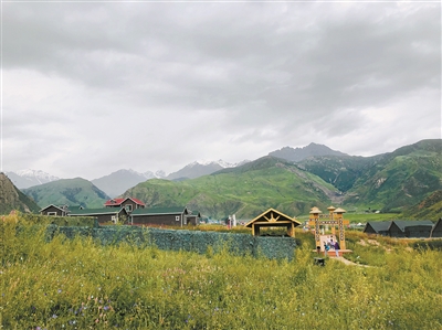 天山托木尔森林公园平台子景区位于托木尔自然保护区内。当地人也称为“平台子景区”“塔格拉克牧场”,这里是天山重点自然保护区,也是雪豹自然保护区。由于临雪山脚下,雨水充足,所以绿草成茵。