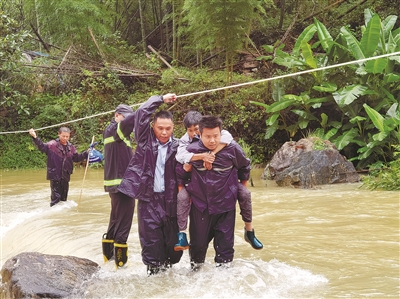 架起绳索通道 紧急转移群众
