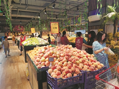 | 物美超市杭州文一路店蔬菜、水果等物品供应充足。 记者张浩呈 摄 |