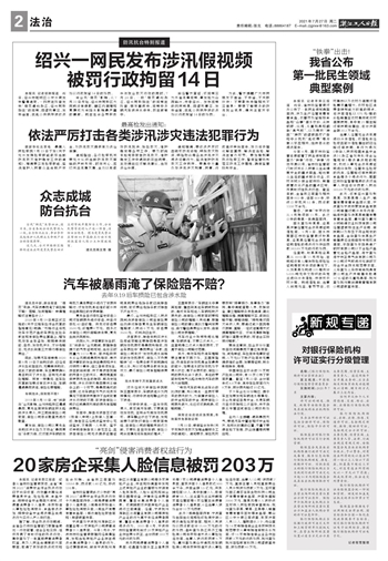 绍兴一网民发布涉汛假视频 被罚行政拘留14日