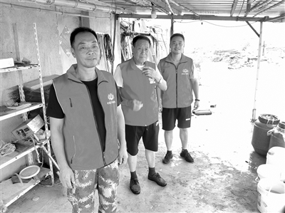 山后村有养殖塘3600余亩,地域范围非常广。王爱卫每天天蒙蒙亮就出发,挨个做养殖户思想工作。面对“顽固留守分子”,他不厌其烦,以情动人。“无论何时,生命安全都是摆在第一位的。真要是出现了险情,你们在现场也危险。”为防养殖户回流,他每天巡逻三趟,逐一排查,反复确认,以策安全。