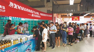 | 郑州市民正在有序排队,领取纳爱斯免费提供的消毒除菌产品。 |