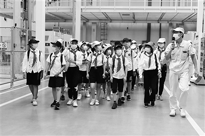 钱塘区是高端制造业集聚地,不少生产车间成为热门游学打卡点,成为了一张张宣传钱塘高端制造业的“金名片”,近日,区总工会联合区少工委开展了“钱塘游学一码通”之夏令营活动,50余名少先队员走进广汽乘用车(杭州)有限公司参观学习。