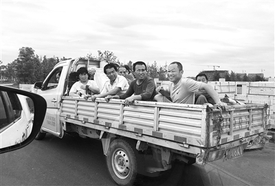 危险! 一辆小货车载了8个人