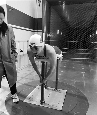 | 张雨霏穿戴好测量设备准备开始试验。 |
