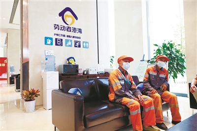 | 环卫工人在劳动者港湾休息。 通讯员郁诗怡 摄 |