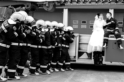 “他每次救援完的外表狼狈不堪,我却觉得他为了人民生命财产安全拼命的模样最迷人。作为一名消防员的妻子,我很荣幸很骄傲,我能够理解他工作的不容易,我做好了心理准备,要做他最坚强的后盾。”陈燕霞表示,此次自己上门是为了未婚夫拍照和执勤两不误。