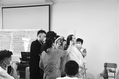 通过理论学习和实操演练,学员学会了时尚剪发·染色、女士晚宴造型、舞台妆、流行发型盘编等多种美发技巧。大家以自身为模特,竞相展示学习成果。