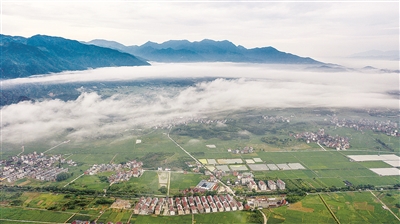 8月14日,雨后的仙居县横溪镇群山、村庄、田园在云雾间若隐若现,宛若人间仙境,美不胜收。
