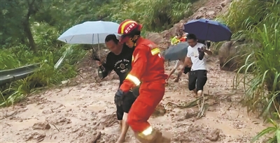据了解,当地因突发暴雨,造成225省道白石往九龙洞方向发生道路塌方,导致在白云山上游玩的多名群众被困,加上塌方路段泥石雨水混合,深度达30厘米左右,被困群众中又以老人和妇女居多,民警就背起老人、妇女,一个接一个地转移到安全路段。经过紧张营救,14名被困群众和6辆车子,已全部转移至安全区域。