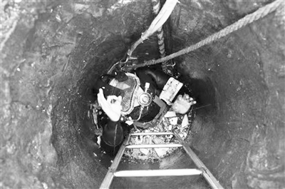 他正准备下井。潜水服把他整个人包围,只露出一双手方便操作,头上戴了氧气面罩,身上的安全绳由4人紧紧拉住。旁人不知道的是,这身潜水服重近20公斤,为了保持稳定,他还在衣服里放了20公斤的铅带。