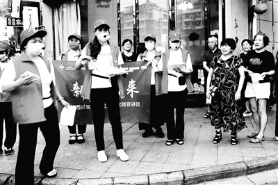 这饱含深情、通俗易懂的快板书,吸引了周围居民驻足观看。用群众喜闻乐见的方式宣讲创文、垃圾分类、反诈骗等内容,达到了寓教于乐,让人入耳入心的目的。图为“新风习来”宣讲团正在西子城居民小区向市民宣传。 齐振松 徐轩 摄影报道