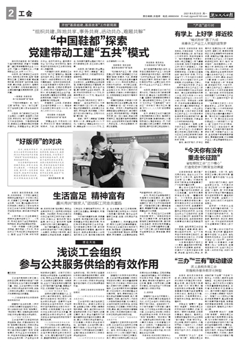 工会组织是党联系职工群众的桥梁纽带,是带领与团结广大职工投身到社会经济建设中的重要力量。因此,工会组织要充分发挥出公共服务供给的有效作用,创新公共服务供给模式,为我国社会经济发展奠定坚实的基础。
