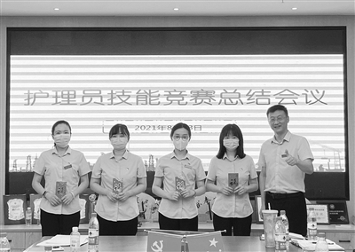 杭州市第二社会福利院开启“1+1+N”模式为队员们保驾护航,全力冲刺竞赛。院领导班子牵头引领,1对1对应协调,并多次召开专题会议进行部署、分析、总结提升。护理科负责人做教练全程“在线”,陪着队员们加班加点训练,每日一比,每周一赛,坚持不懈。办公室、总务科、社工科、财务科等几个科室团结协作,全力支持做好保障工作,使4名队员能够安心参赛,赛出好成绩。