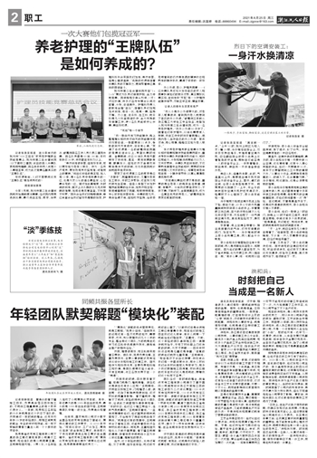 “虽然训练很辛苦,但练好本领,可以更好地为老年人服务。作为一名共产党员,要发扬党员攻坚克难、迎难而上的精神。”说出这句话的是王珏,她入党12年,是4名队员中党龄最长的一位,也是大家公认的信念最坚定、心态最乐观的一位。面对如此高强度、长时间的训练,面对上幼儿园的女儿无法照顾的难题,她却总是笑意盈盈,不叫苦不叫累。“院长会给我们买咖啡提神,单位食堂会给我们留好热腾腾的饭菜,护理科科长会来陪我们加练,虽然辛苦,但是心里很温暖。”优异的成绩凝结着参赛队员的不懈努力,更凝聚着单位集体的团结奋斗。