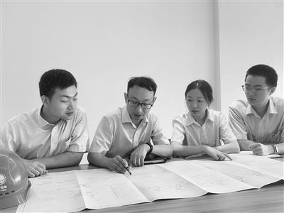 | 年轻团队在认真预审施工图纸。通讯员傅骏峰 摄 |