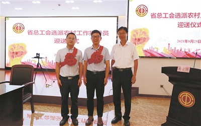 本报讯 记者阮向民报道 昨日上午,省总工会举行选派农村工作指导员迎送仪式。省总工会党组书记、副主席张才方勉励派驻人员在农村基层一线新岗位上经受锤炼,奋发有为,为推进乡村振兴、推动共同富裕贡献工会力量。