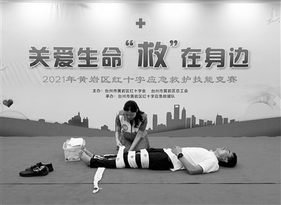 本报讯 通讯员邵青青 记者潘仙德摄影报道 日前,台州市黄岩区红十字会、黄岩区总工会在城区社区卫生服务中心红十字应急救护培训基地联合举办了2021年黄岩区红十字应急救护技能竞赛。