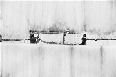 米面是温岭市石桥头镇传统加工业。近年来,石桥头镇聚焦“增效、普惠”,深挖产业潜力,实施同业联盟、标准驱动、联资延链,米面加工户从“单打独斗”到“抱团成长”,进一步激发产业发展活力,走出了一条产业整组带动“共同富裕”新路子,2020年,全镇米面等传统产业综合效益较2018年提高近60%。图为温岭市石桥头镇西城新村米面专业合作社社员在晾晒米面。通讯员刘振清 摄