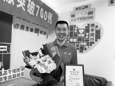 8月27日13时30分,经过5个小时的采集,王海斌在浙江省中医院成功捐献了270毫升造血干细胞悬浊液,这些“生命种子”给远方素不相识的血液病患者点燃了生的希望。他也成为了黄岩区第16例、我省第713例造血干细胞捐献者。