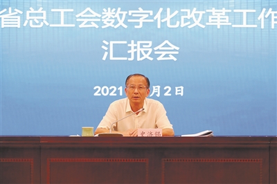 本报讯 记者曾晨路报道 9月2日,省总工会召开数字化改革工作汇报会,进一步研究部署工会数字化改革工作。省人大常委会副主任、省总工会主席史济锡在会上强调,要以学习者、奔跑者、攀登者的姿态投身数字化改革,突出实战实效,体现“管用”“好用”,努力打造更多有工会辨识度的“硬核”成果。省总工会党组书记、副主席张才方主持会议。