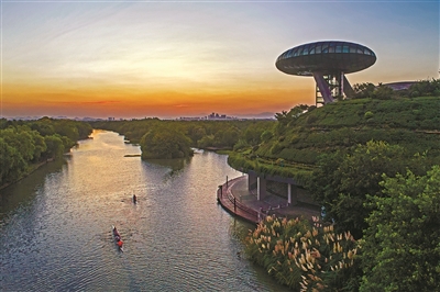 傍晚,告别“双西”,跨过钱江,来到萧山。华灯初上,漫步湘湖边,感受别样风情。
