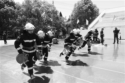 本报讯 记者潘仙德摄影报道 为提高广大职工应急处置火情的能力,近日,天台县总工会与县消安委办联合举办了消防技能大赛。来自全县各企业、乡镇(街道)以及村(居)和社区志愿消防队共300余名队员参加了比赛。