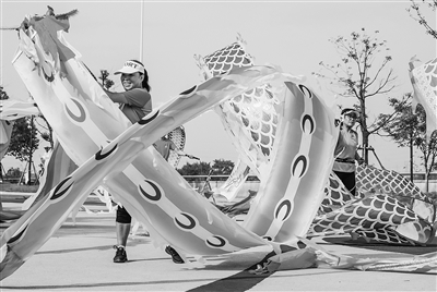 近日,“秋老虎”余威犹在。衢州市柯城区双港街道的西港公园里,“龙之舞”彩带龙舞龙团队,舞得虎虎生风,汗流浃背。