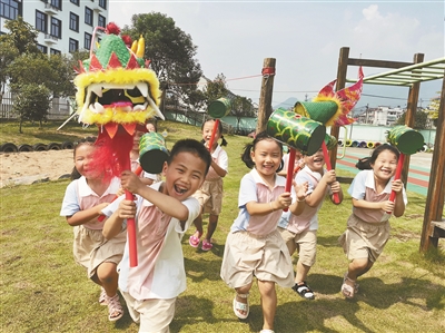 为迎接亚运会,建德市李家中心幼儿园开展“迎亚运 健康鼓舞”课间操活动,将舞断龙、打腰鼓等当地民俗技艺融合创编为独特的课间活动项目,引导师生健康运动,迎接亚运。通讯员廖艳芳 摄