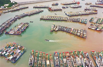 昨日,无人机镜头下,近千艘整装待发的渔船有序停泊在温岭中心渔港箬山港区。