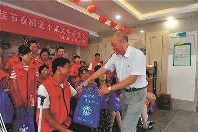 在中秋佳节之际,为进一步弘扬“奉献、友爱、互助、进步”的志愿者精神,让残疾人这一社会弱势群体在中国传统佳节里能够体会到工会的温暖,衢州市总工会党组副书记、副主席揭政东带领党员干部,以及市总工会秋之韵艺术团,赶赴洁丽雅残疾人之家,开展“欢度中秋”系列活动,为企业的残疾人送上一顿丰盛的文艺大餐。