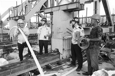 图为10月10日,路桥区路南派出所民警正在一重点工程建设现场走访并宣传安全生产常识。通讯员蒋友青 摄