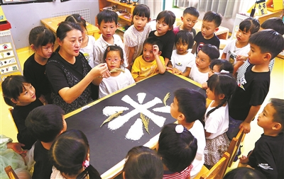 老师们通过视频播放和稻谷知识介绍,让孩子们从小明白每一粒粮食都是农民伯伯辛勤劳动的结晶,懂得“一粥一饭,来之不易”的道理。