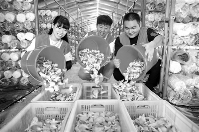据了解,富达食用菌基地以生产袖珍菇和香菇为主,同时培植了营养价值和市场价格较高的大球盖菇、鸡枞菌和羊肚菌等,每年培植菌棒60多万袋,可产菌菇400多吨。