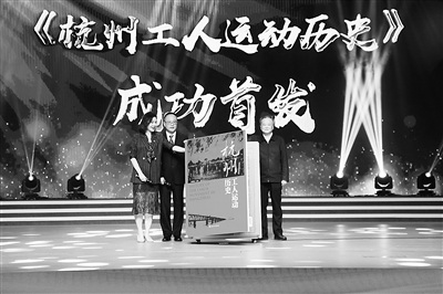 活动现场还举行了《杭州工人运动历史》新书首发仪式,并以情景剧的形式,展现了《曲江工潮》创刊、钱塘江大桥炸桥与护桥、新安江水电站建设等在杭州工人运动历史中浓墨重彩的一笔。这本由中国工人出版社出版的新书回顾和展示了杭州市总在中国共产党领导下团结带领工人阶级在革命、建设、改革各个历史阶段所走过的光辉历程。