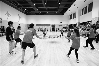 本报讯 记者张浩呈 通讯员郁诗怡、陈浩飞摄影报道 “跑出咱们‘快递小哥’的速度,冲呀!”行走在“革命之路”上,来自中国邮政集团有限公司宁波市分公司的快递员吴师傅振臂高呼。日前,宁波市新就业形态劳动者趣味运动会在宁波市五一广场篮球馆举行,来自各区县(市)、产业、园区的17个代表队200余名新就业形态劳动者运动员参加了此次运动盛会。