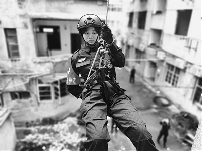 在迅龙突击队,擒拿格斗,她一点不输英雄气;高空索降,她从十几米一跃而下;武装越野,她突破身体极限,咬牙坚持冲过终点。而且还完成了特种车驾驶、无人机的使用,搏击等科目训练。