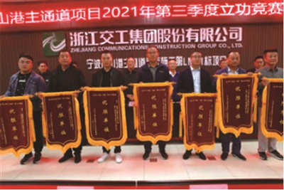 近日,浙江省交通集团宁波舟山港主通道项目召开2021年第三季度立功竞赛总结表彰动员大会,7家先进集体、5个先进班组、33名先进个人受到表彰。