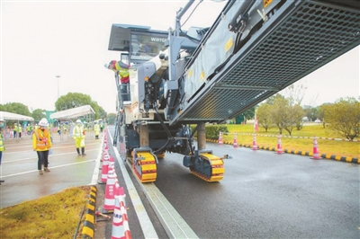 贴边行驶50米,与边线间距不得大于5厘米;保持水平,从15厘米高、25厘米宽“独木桥”单边通过;运用输送带完成三次定点投料……这是2021年浙江省道路养护工铣刨机操作工技能竞赛决赛项目的规则。近日,来自省直企业和各市的12支代表队,在衢州江山市角逐该赛事个人和团体优胜奖。