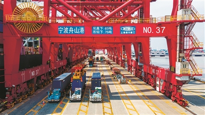 | 宁波舟山港作业现场。 刘嘉明 摄 |