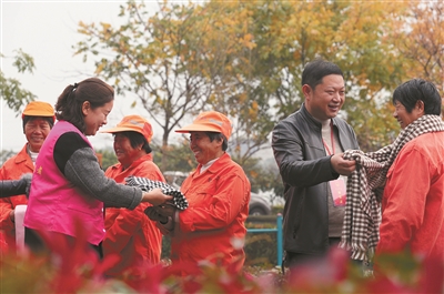 昨日,德清县乾元镇人大办和妇联开展“”活动,将围巾、手套及耳套等御寒物品,送给奋战一线的村社环卫工人,感谢他们为美丽乡村建设付出的辛勤劳动。