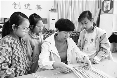 竹编课上,孩子们学习竹编起底、压挑、收口的基本方法,用灵巧的双手编织出各种造型的作品;绗缝课上,大师手把手教学生穿针引线,耐心地教给他们基本的缝纫技能,还缝制出了各种可爱的工艺品;麦秆剪贴课,则包含了描图、拼贴、剪刻、镶边、粘贴等多种技巧,十分考验学生动手能力……几位大师在传授手艺的同时,也传递了耐心、专注和坚持的“工匠精神”。