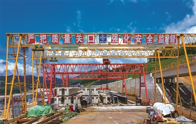 另外,按照本年党史学习教育部署,全面投入“学党史、当先锋、奋战百天、争创一流”活动,采取“周告知、月亮晒、季比拼”的挂图作战模式,每周召开项目建设难题分析会,每月亮晒成效和亮点,根据进度亮红旗、黑旗,每季度实施考核排名。特别是根据山区气候多变、作业空间小、施工技术难度大、工艺复杂、道路运输条件差、施工组织难等难题,组建了“交投铁军党员攻坚队”,明确责任目标,实施挂图作战,优化施工组织设计,明确攻坚任务清单,抢晴天、战雨天,抓质量、保安全,冲在攻坚克难第一线,全力以赴推进工程建设。自2019年5月项目正式开工以来,截至目前已完成77%的形象进度。