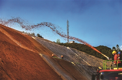 把高速公路轻轻“放”在绿水青山间。在山区高速,隧道洞渣不当处置会对土地和水质产生污染,秉承“最小破坏就是最大保护、循环利用就是最大节约”的理念,景文高速项目结合高桥隧比、隧道洞渣优质的实际,投入1000多万元引进先进的塔楼式制砂设备,变废为宝,将隧道洞渣加工成机制砂,掌握了机制砂用于高标号混凝土的核心技术,应用于控制工程高岭头水库特大桥的立柱、高墩等关键结构部位。相较整体资源短缺、价格波动的黄砂,自加工机制砂不仅能够稳定满足项目建设的需求,还能有效降低成本,保护环境。目前,景文项目全线机制砂使用率达到100%,是全省首个全面运用机制砂工艺的高速项目。