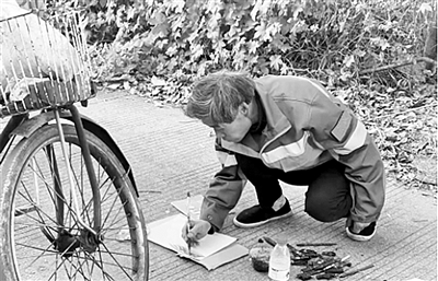 通讯员陈章升报道 孟庆宝半蹲在地上,从“百宝箱”中拿出画笔、颜料、纸等,过了40分钟左右,一幅精美的素描作品展现在人们眼前……近日,宁波慈溪市宗汉街道环卫所工人孟庆宝利用休息时间在空地上画画,吸引不少人围观。