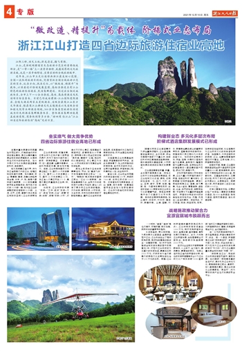 近年来,江山市立足打造诗画浙江最美核心花园、全国一流休闲旅游目的地,凭借首批全国全域旅游示范区的实力,认准方向,找准定位,以“微改造、精提升”为载体,以顶层设计绘制发展蓝图,高标准推进具有江山特色的旅游住宿酒店、民宿集群建设。经过出台相关施政体系,全市上下一心合力推进,高端、高品质酒店及民宿项目纷至沓来。目前已形成由君澜·江山国际度假酒店、金陵大酒店两家五星级酒店、省级金鼎奖江山东方文华酒店、银鼎奖江山耕读文化主题酒店以及省级金宿和睦大院等头部酒店领跑,300余家各类型旅游住宿设施为补充的酒店集群服务体系。整体酒店集群功能覆盖旅游度假、商务休闲等多方面。“游四周 住江山”江山四省边际旅游住宿“高地”光彩日显。